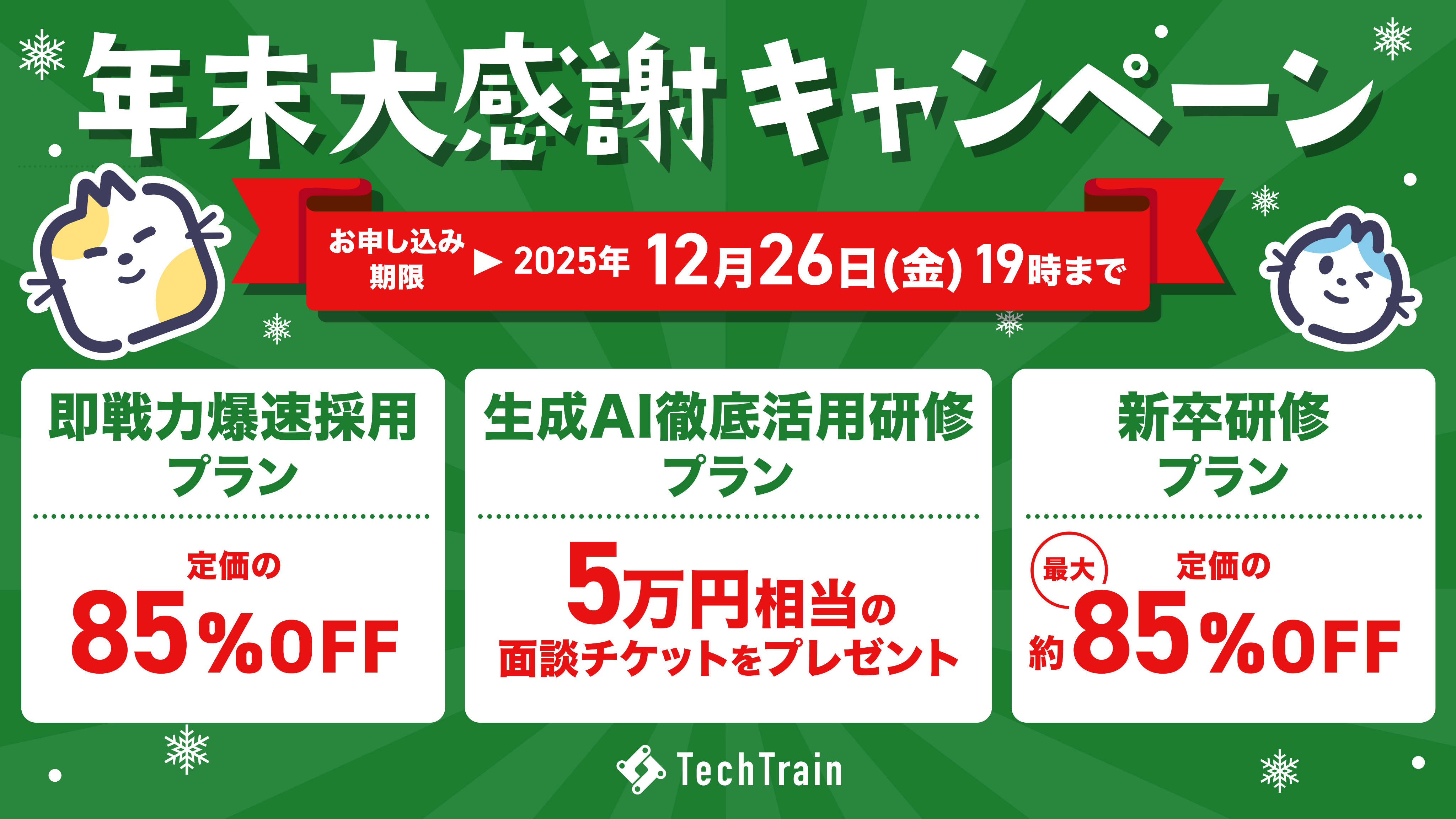 TechTrain、採用支援と人材育成を一体で強化する「年末大感謝キャンペーン」を開始― 年内申し込みに限り最大85%OFFの特別企画 ―