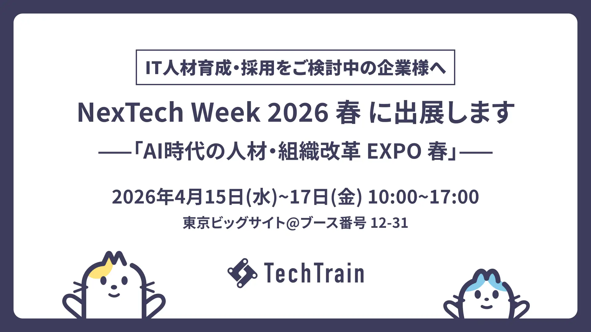 IT人材育成を“現場で使える”状態にするには?成果が続く仕組みづくりを公開。TechTrain、NexTech Week 2026 春(4/15〜17・東京ビッグサイト)に出展