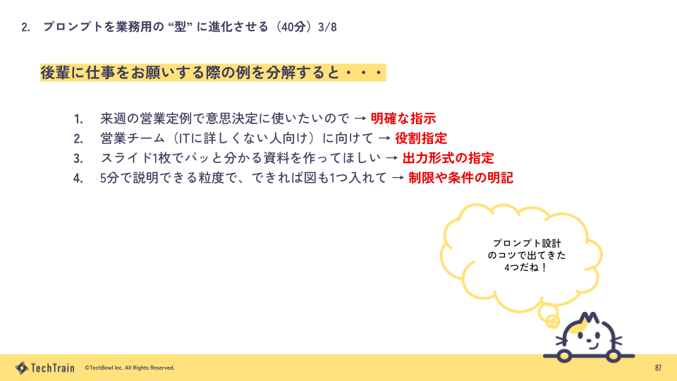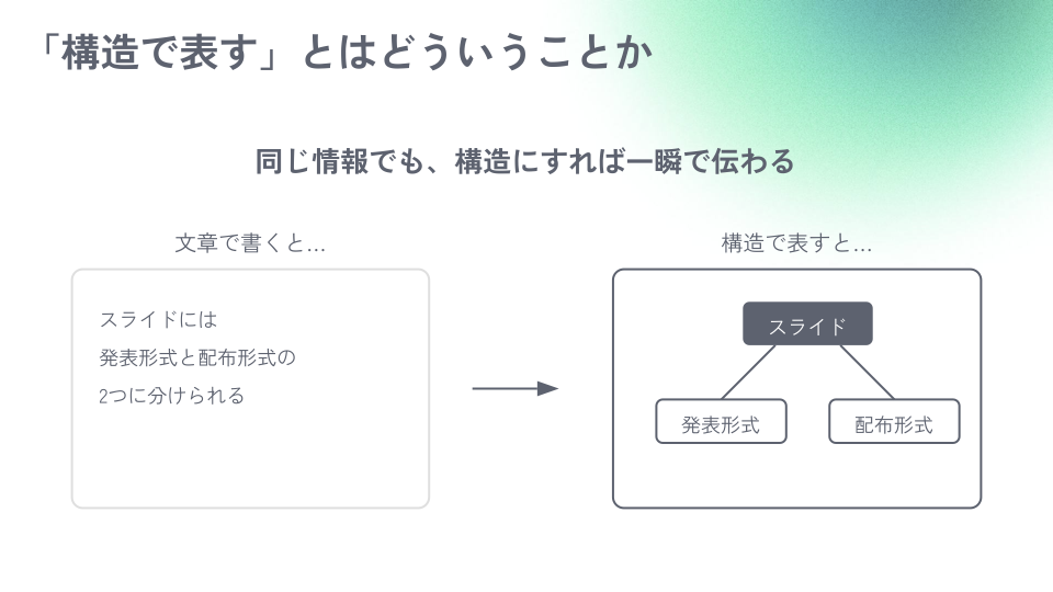 伝わるスライドはシナリオから始まる。目的設定・構成設計・メッセージの言語化まで、AIを活用しながらプレゼンテーションを高速に仕上げる実践的なスキルを習得します。
