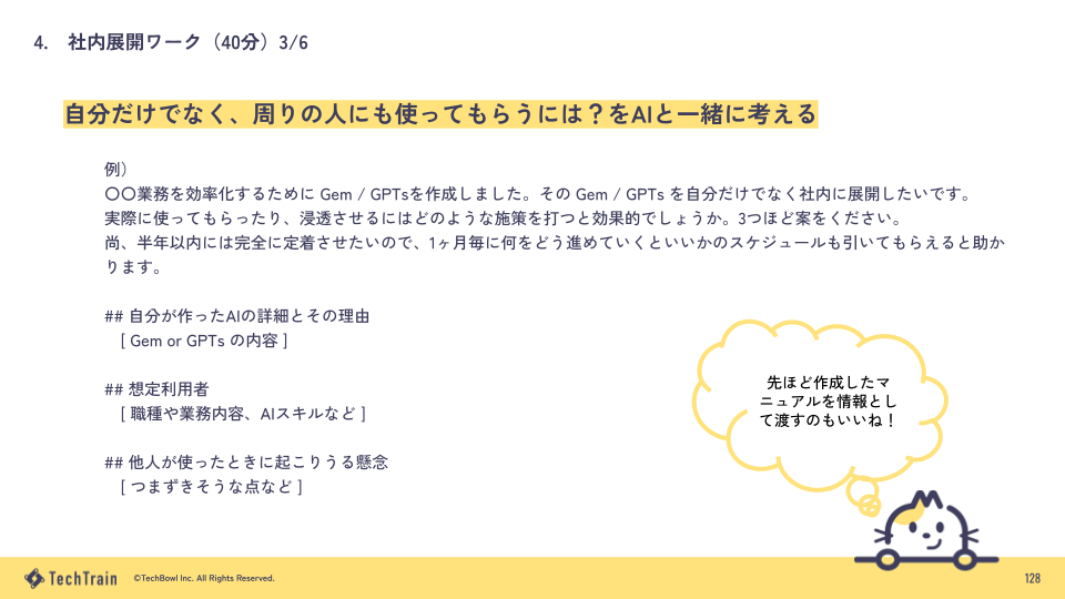 ハンズオン・セミナーと組み合わせることで、研修効果の定着を高めます。