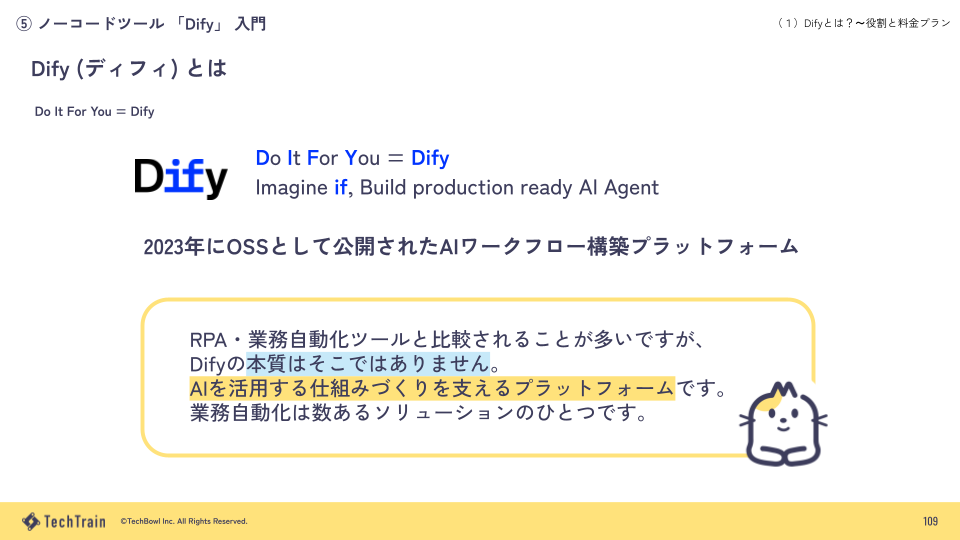 生成AIを活用した情報検索の手法とDifyを用いた簡単なRAG構築を学ぶハンズオン。全職種対象。