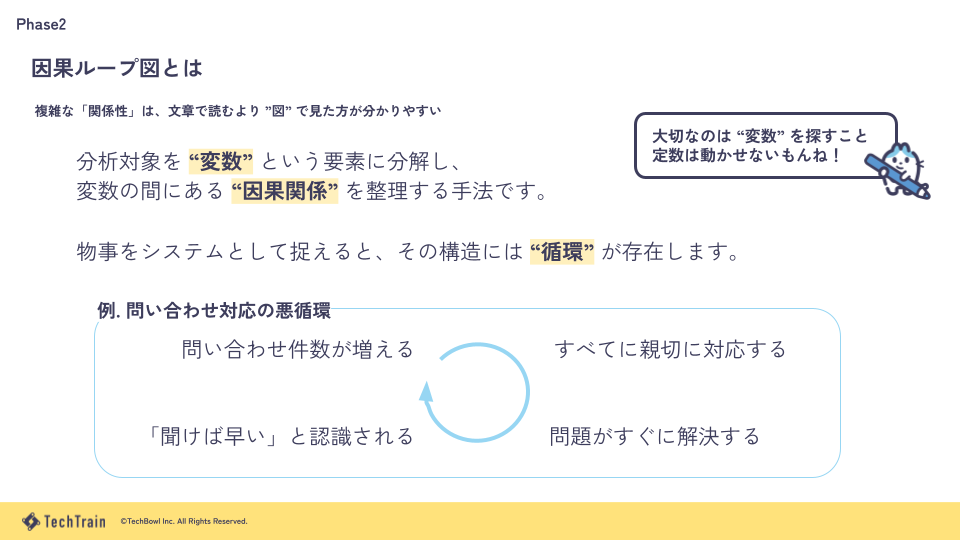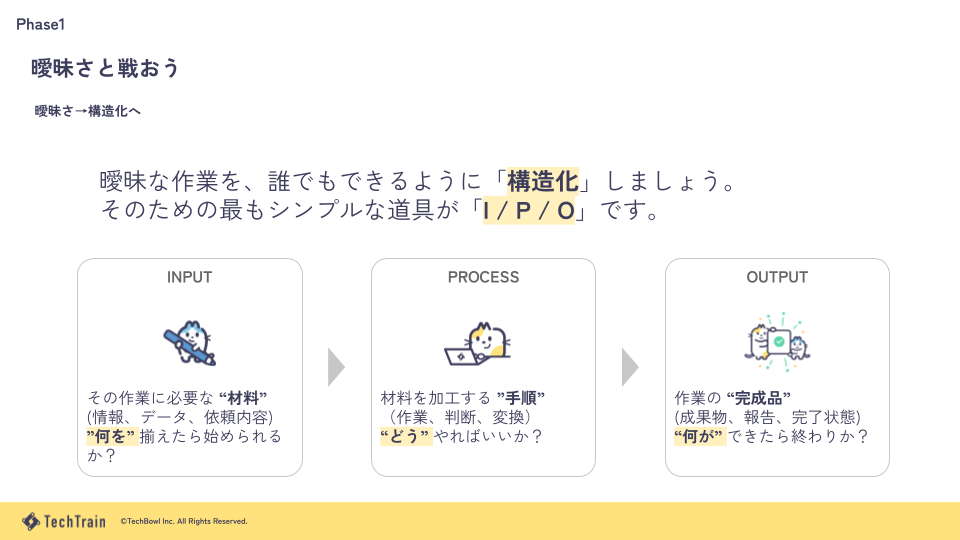 業務におけるさまざまな課題を構造的に捉え、問いの本質を捉える思考フレームワーク。PM・マネージャー職に特に有効。AI活用力を強化するための基礎力アップにも極めて有効なアプローチです。